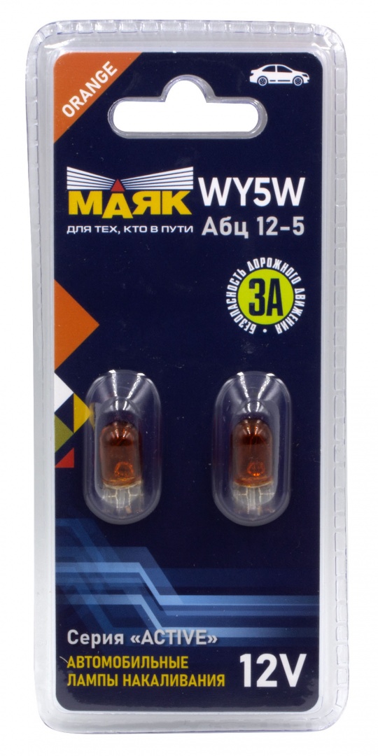 Лампа "Маяк" Aбц 12-5 W2.1x9.5d ORANGE ACTIVE (2 шт), в блистере