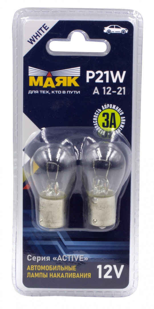 Лампа "Маяк" A 12-21 BA15s ACTIVE (2 шт), в блистере