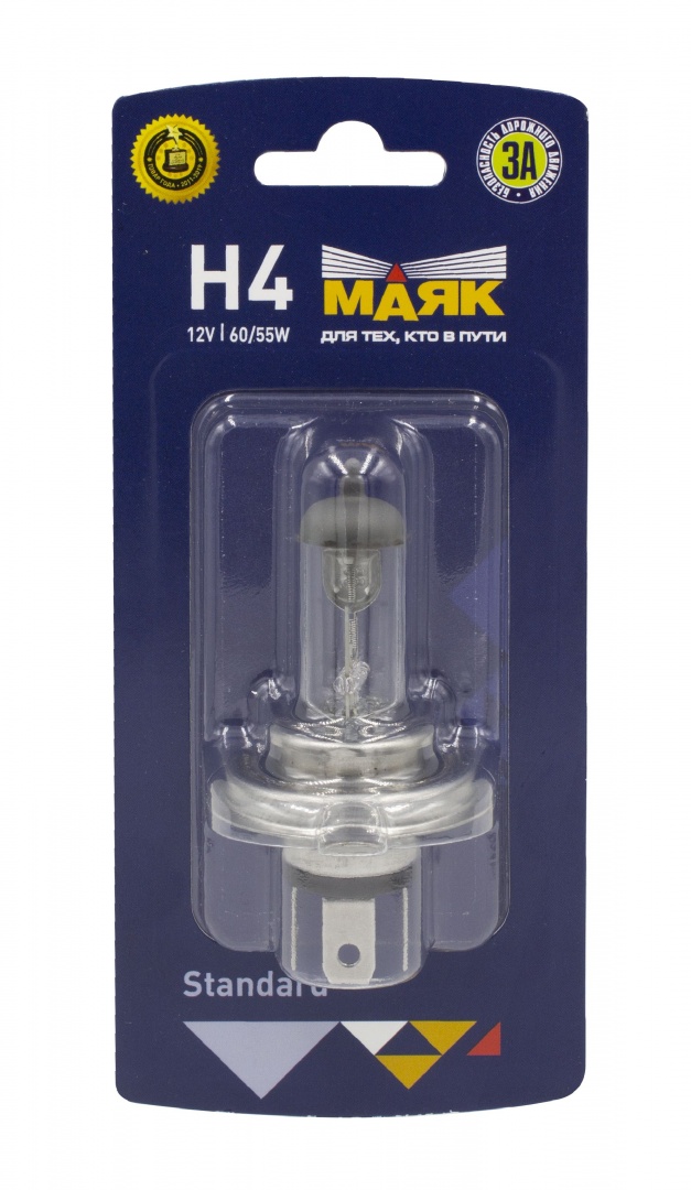 Лампа "Маяк" H 4 12V 60/55W P43t, в блистере