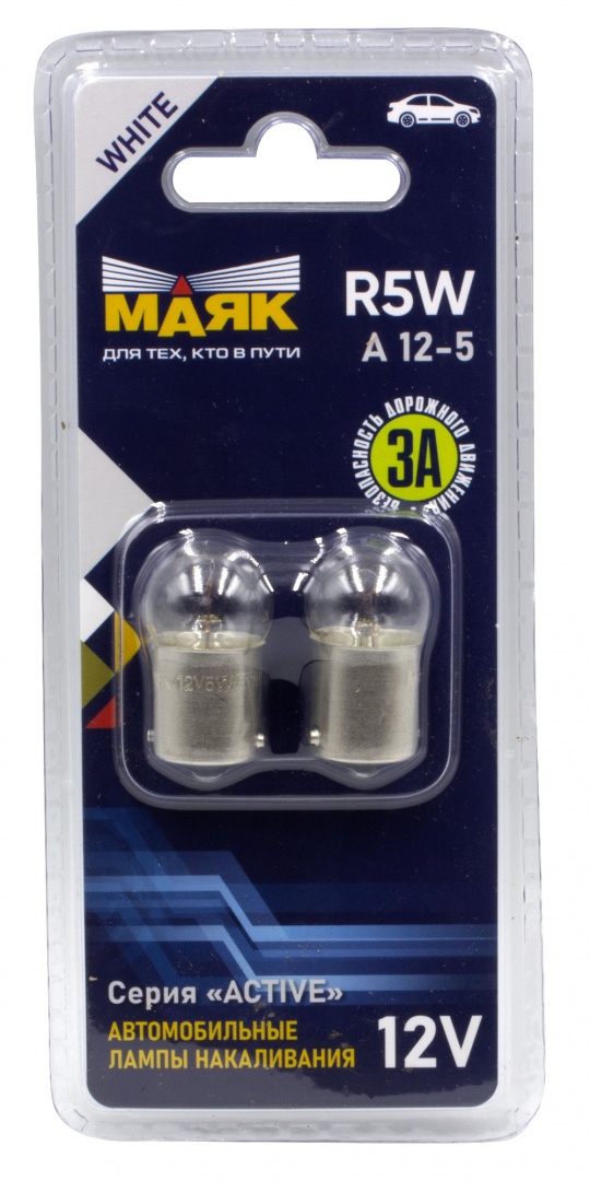 Лампа "Маяк" R5W 12V 5W BA15S ACTIVE (2шт), в блистере