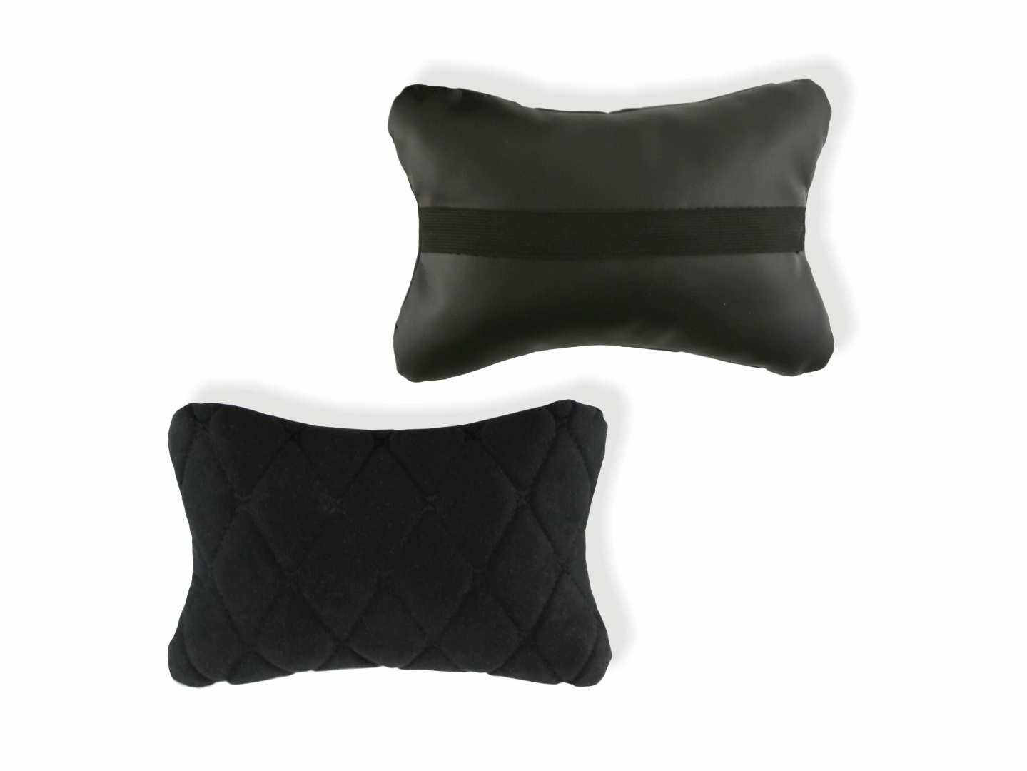 Подушка-подголовник на сиденье "косточка", черная с прострочкой черной ромбиками (26х17см)