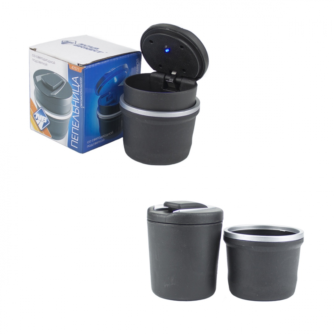 Пепельница "Nova Bright" чёрная со светодиодной подсветкой 2в1