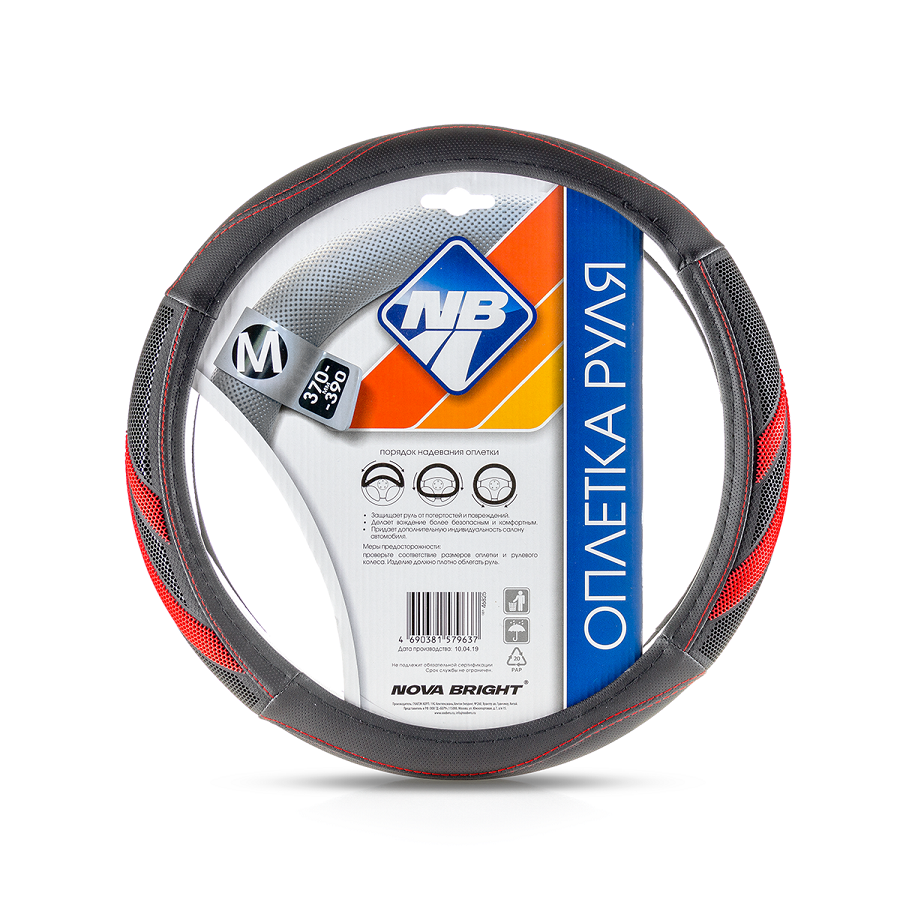 Оплетка рулевого колеса "Nova Bright" (L) экокожа, черная с красной прострочкой ромбиками