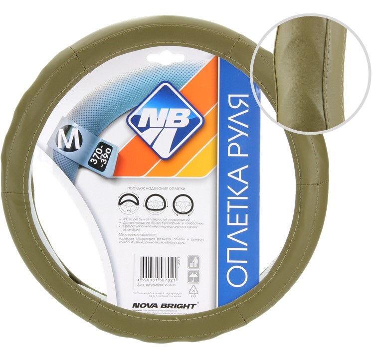 Оплетка рулевого колеса "Nova Bright" (M) экокожа, бежевая с рельефными вставками
