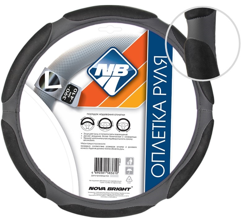Оплетка рулевого колеса "Nova Bright" (L) экокожа, спонжевая, черная