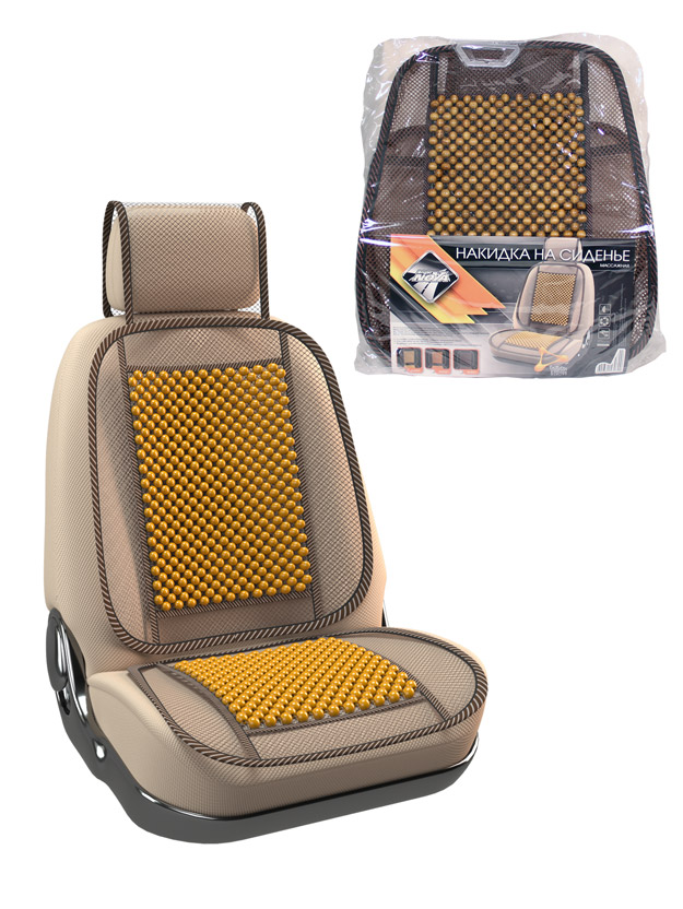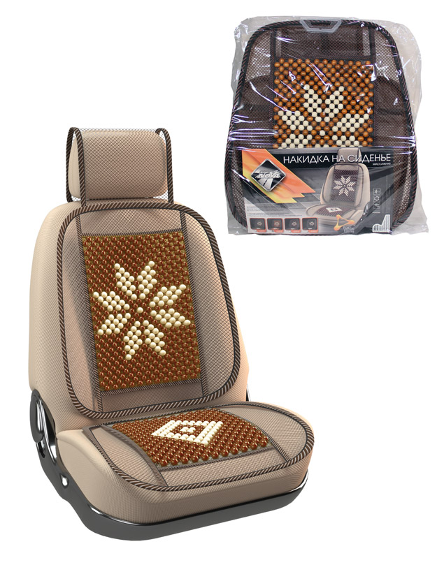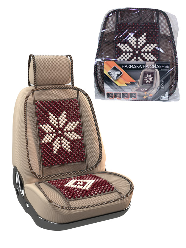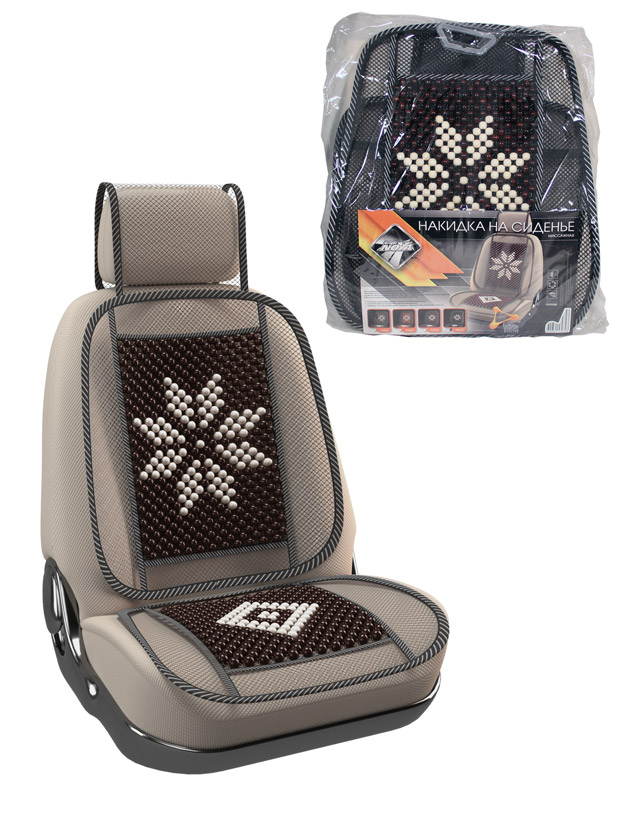 Накидка на сиденье "Nova Bright-fusion" массажная, сетчатая, с подголовником (деревянные вставки, с рисунком, бежевая) (131х51см)