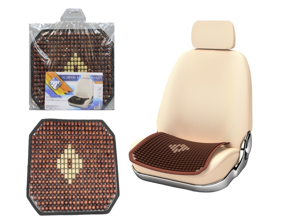 Накидка (коврик) на сидение "Nova Bright" массажная деревянная, коричневая с рисунком, противоскользящая основа