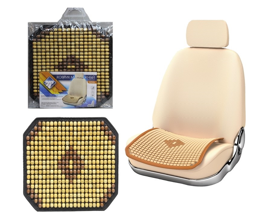 Накидка (коврик) на сидение "Nova Bright" массажная деревянная, бежевая с рисунком, противоскользящая основа