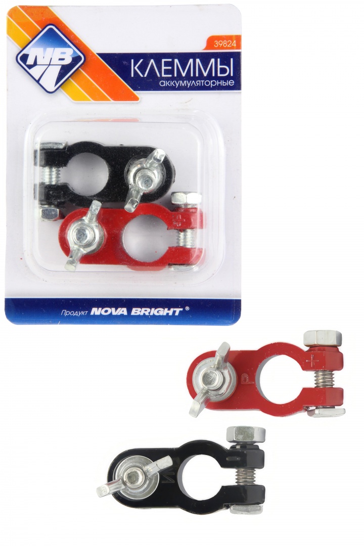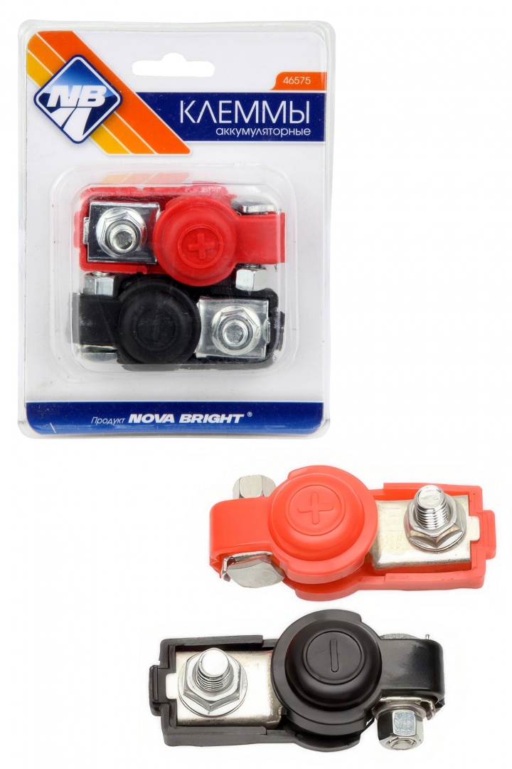 Клеммы аккумуляторные "Nova Bright" в блистере (чёрные "-", красные "+") - 2шт.