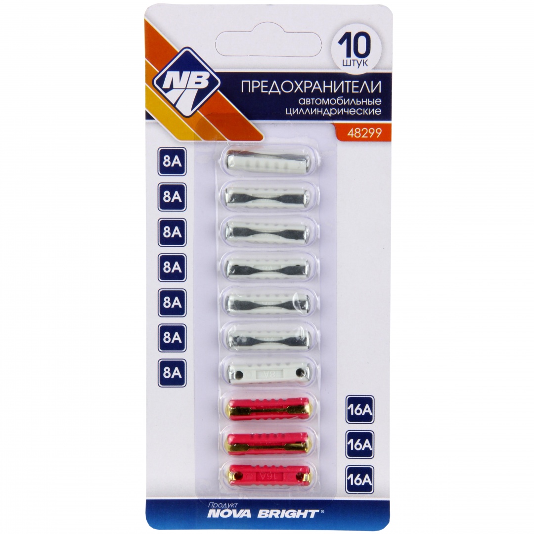 Предохранители цилиндрические в блистере "Nova Bright" (8А-16А) (10шт)