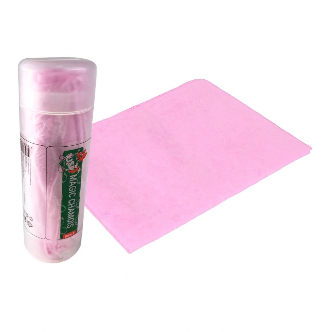Салфетка "Li-Sa" из синтетической замши в тубе, маленькая (32х43см)/100, розовая