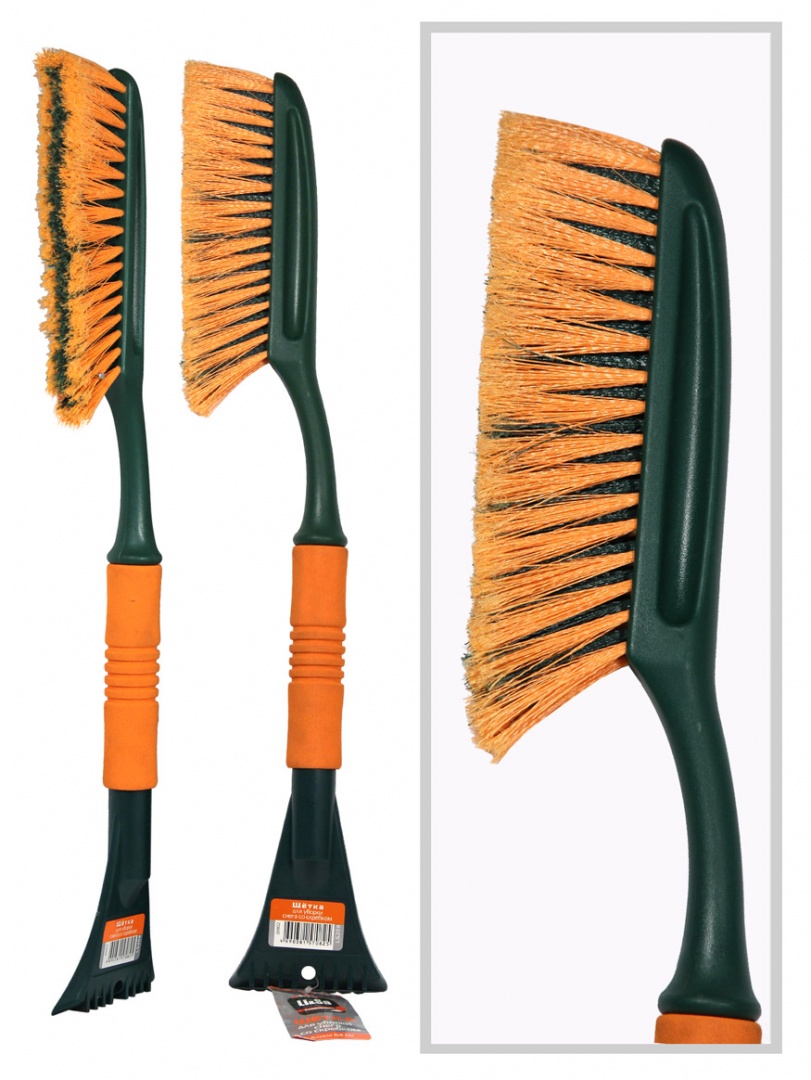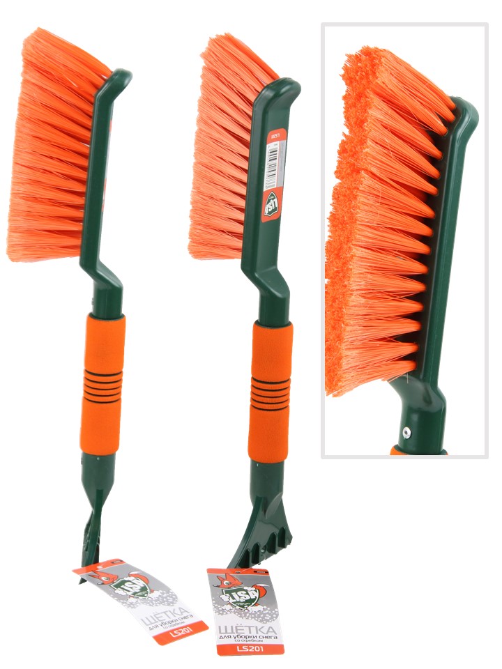 Щетка для снега cо скребком "Li-Sa" LS201, поролоновая ручка, оранжево-зеленая, 42см