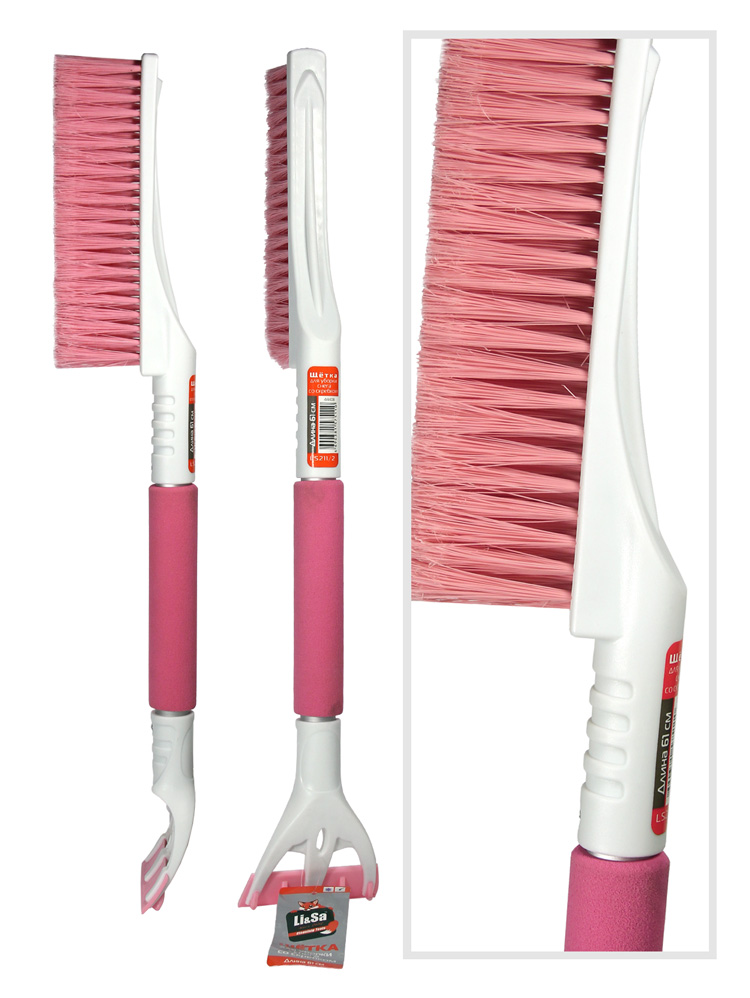 Щетка для снега cо скребком "Li-Sa" LS211/2, поролоновая ручка, расщепленная щетина, бело-розовая, 61 см