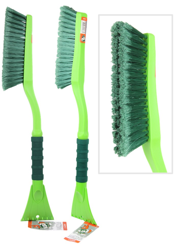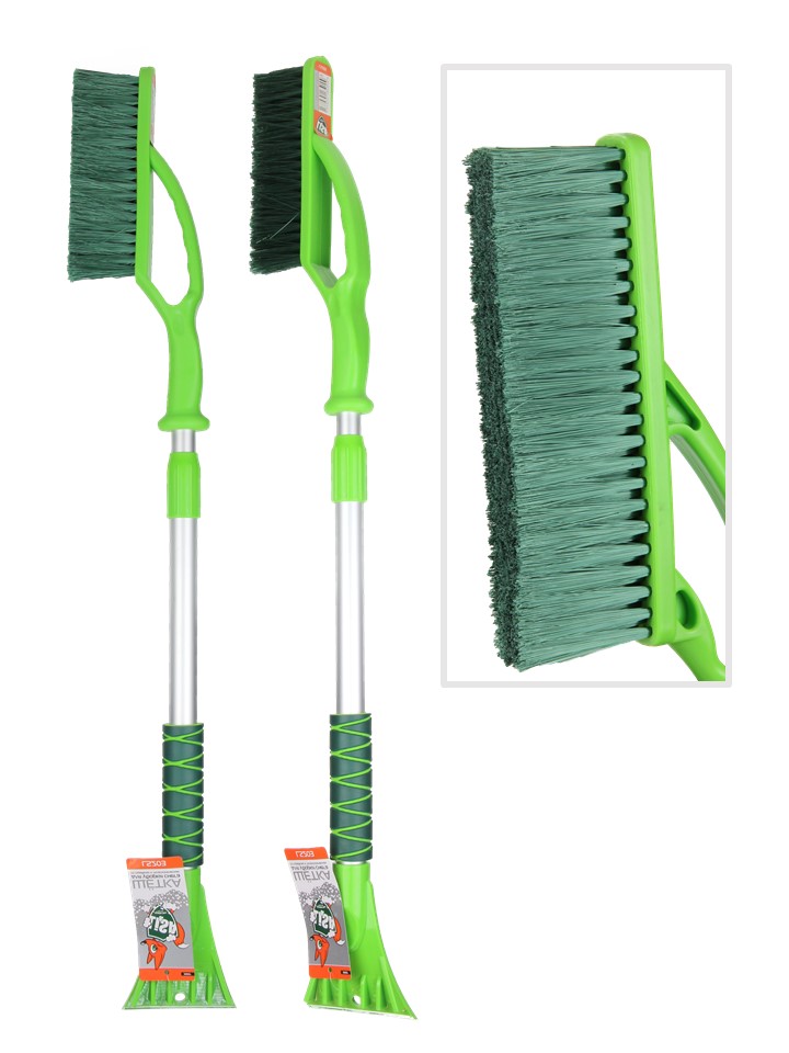 Щетка для снега cо скребком "Li-Sa" LS209, поролоновая ручка, расщепленная щетина, салатово-зеленая, 62 см