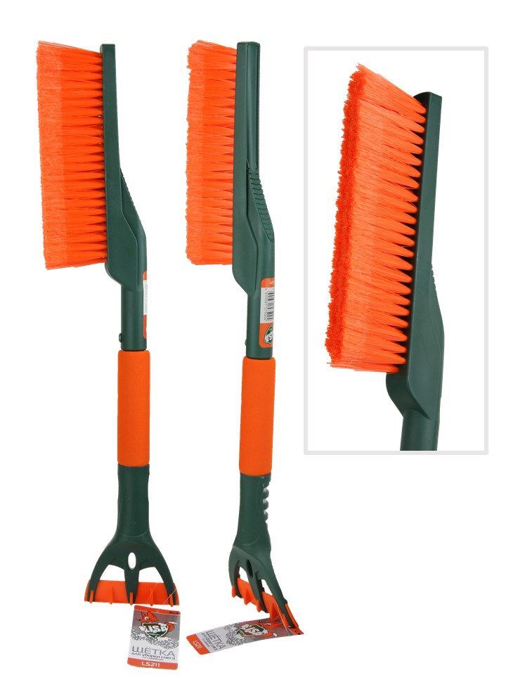 Щетка для снега cо скребком "Li-Sa" LS211, поролоновая ручка, расщепленная щетина, оранжево-зеленая, 61 см
