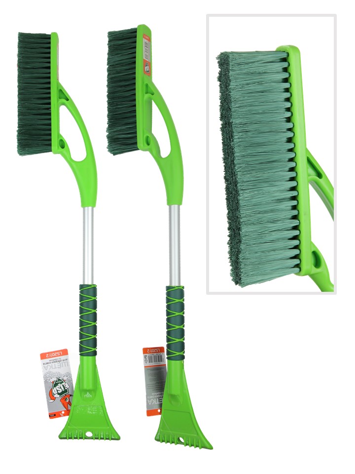 Щетка для снега cо скребком "Li-Sa" LS207/2, поролоновая ручка, длинная щетина, салатово-зеленая, 72см