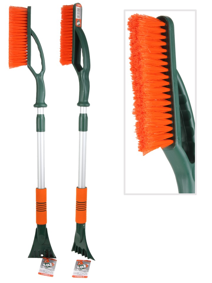 Щетка для снега cо скребком "Li-Sa" LS203/2 телескопическая, поролоновая ручка, оранжево-зеленая, 84,5-112,5см