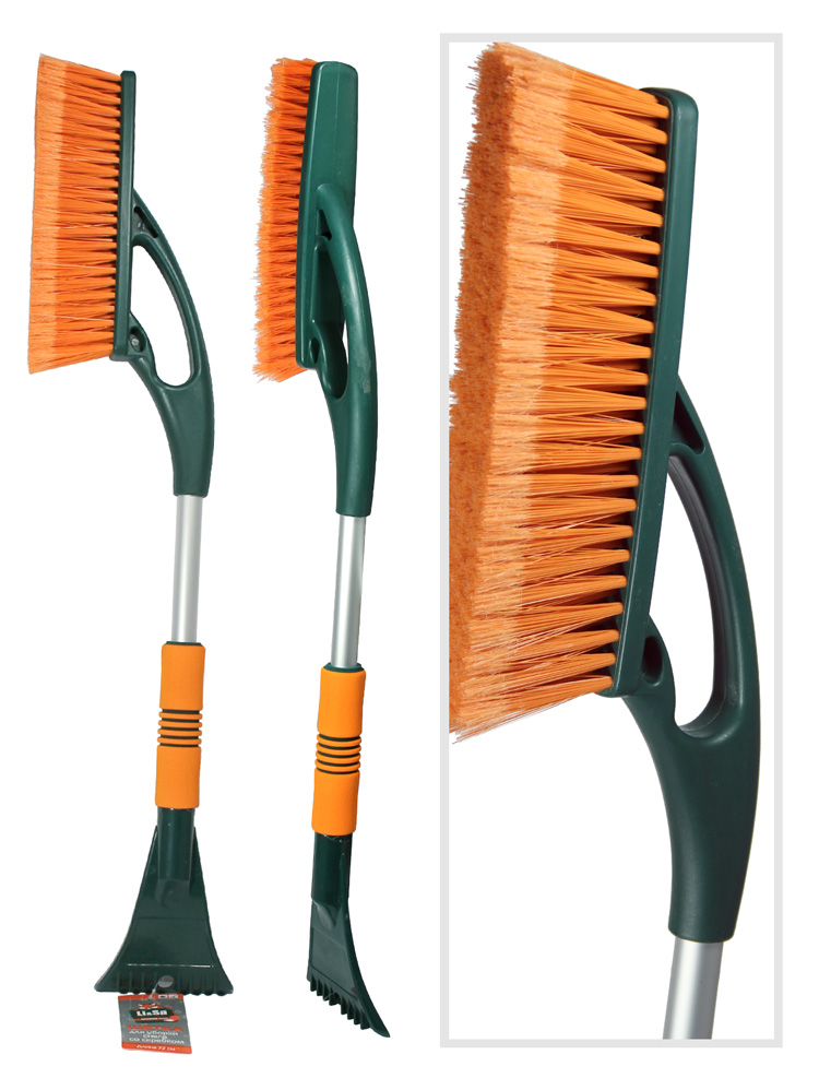 Щетка для снега cо скребком "Li-Sa" LS207, поролоновая ручка, длинная щетина, оранжево-зеленая, 72см